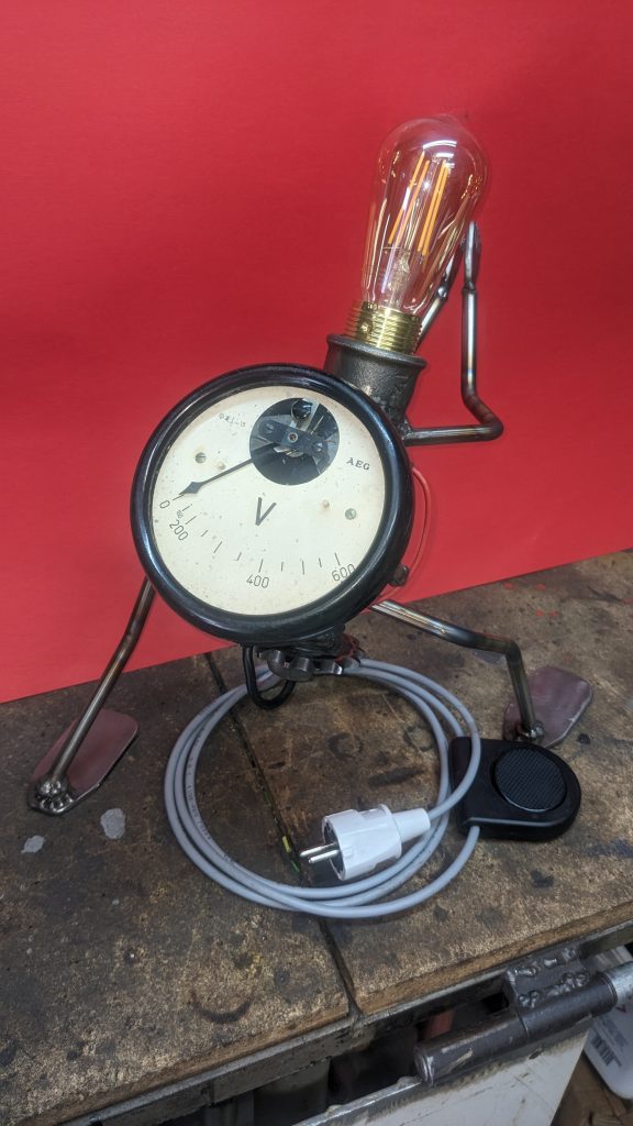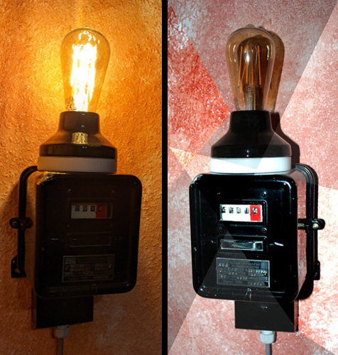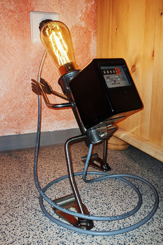Die dazu passenden  Antiquariat Teile, wie ein kleiner Stromzähler aus Anfang der siebziger Jahre zu finden, äußerst selten, wenn dann light-boy unter Strom steht, und die Edison Glühbirne leuchtet am Firmament, zählt er auch den verbrauchten Strom vom Nachbarn, man kann alles ergänzen und ausbauen.