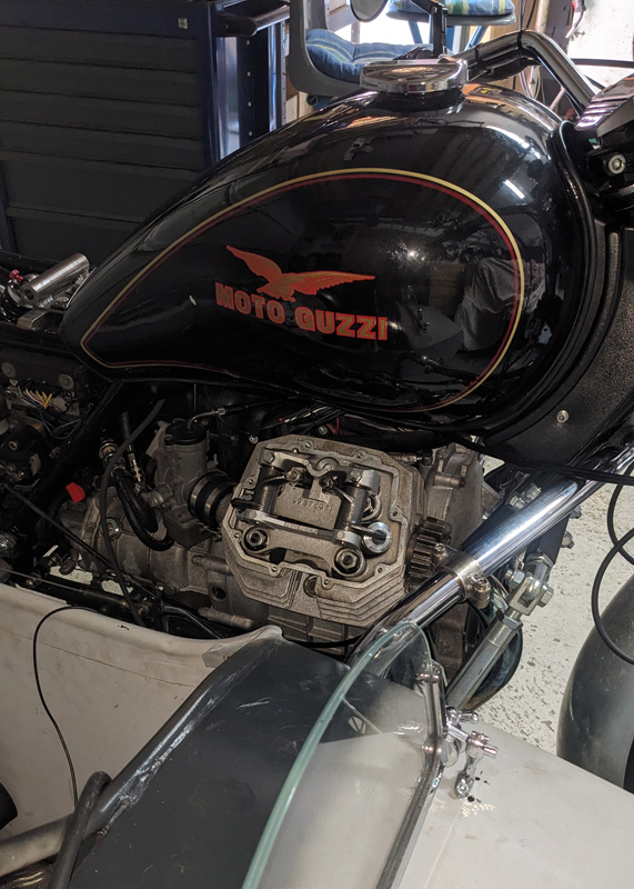 Gabel von diesem Vehikel überholt, versifftes Öl ausbluten lassen, und nach Biker Manier Öl aufgefüllt, so dass es für ein Gespann fahrtechnisch im Lot ist.